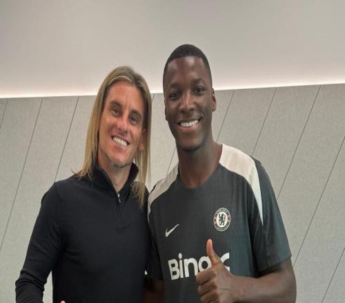 厄瓜多尔主帅贝卡切切现场观战切尔西,并与凯塞多合影