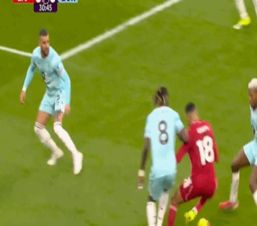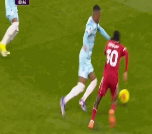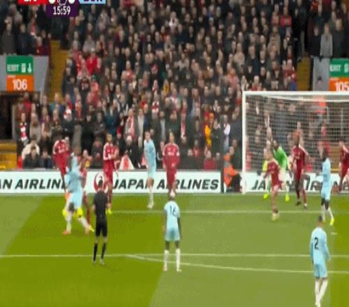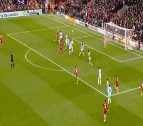 第63分钟,利物浦后场配合失误,马库斯-爱德华兹插上传中,科纳特滑铲解围差点自摆乌龙,阿利松奋力将球扑出。